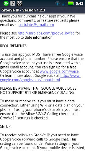 For requirements, setup details, answers to frequently asked questions, known issues, or more information, please visit http://snrblabs.com/snrb/grooveIp.aspx